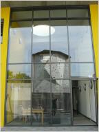 Im Obergeschoss liegen Büros und Seminarräume für die Jugendabteilung der Stadt. Von Außen und Innen erschließbar kann man den gesamten Stock als eigenständige, interne und ruhige Zone nutzen ohne sich von dem öffentlichen Bereich einschränken zu lassen. Externe Tagungen oder Schulungen sind somit vom normalen Alltagsbetrieb unabhängig.