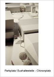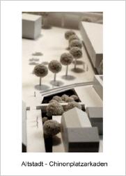 Der Vorplatz der Altstadt dient als Bindeglied zwischen alt und neu, zwischen Historie und Kommerz. Er nimmt die verschiedenen Richtungen der gewachsenen Struktur auf, ergänzt sie und bindet sie durch ein innenliegendes Bezugssystem aus Baumreihen und Brunnen zusammen.